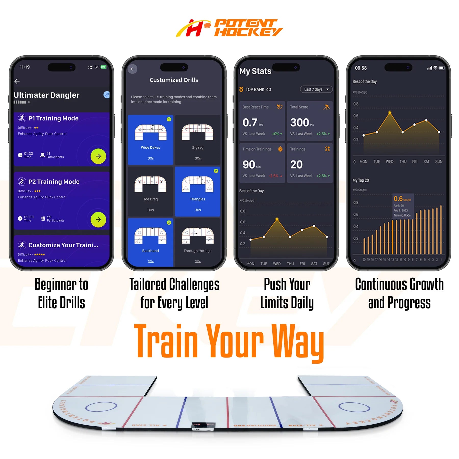 Systemet anpassar sig till din nivå och erbjuder intelligenta övningar via appen Dangle Elite, vilket gör träningen rolig, utmanande och effektiv – oavsett om du är nybörjare eller elitspelare.