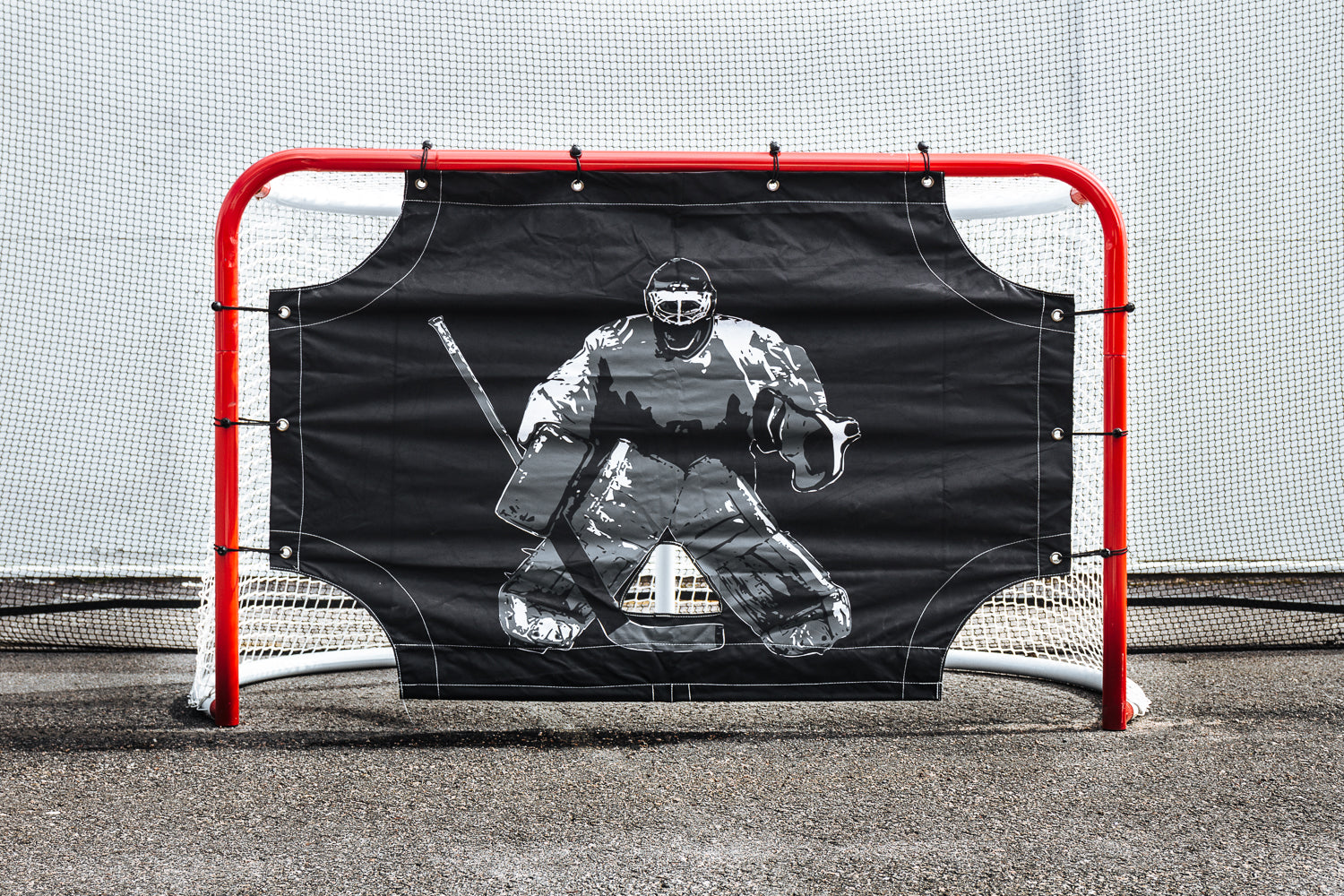 Tillverkad i kraftig, vädertålig polyesterväv som enkelt fästs på ett fullstort hockeymål. Perfekt för teknikträning, street hockey och fritidsspel.